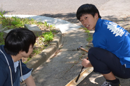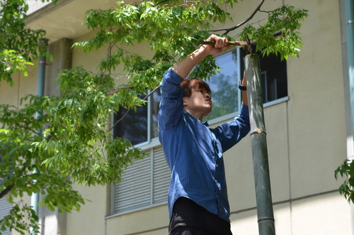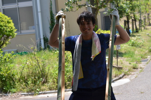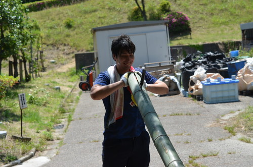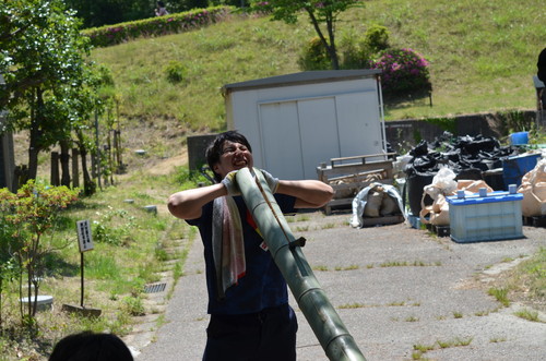 そして竹を割ります。今年のパワー要員は祐基くんです!